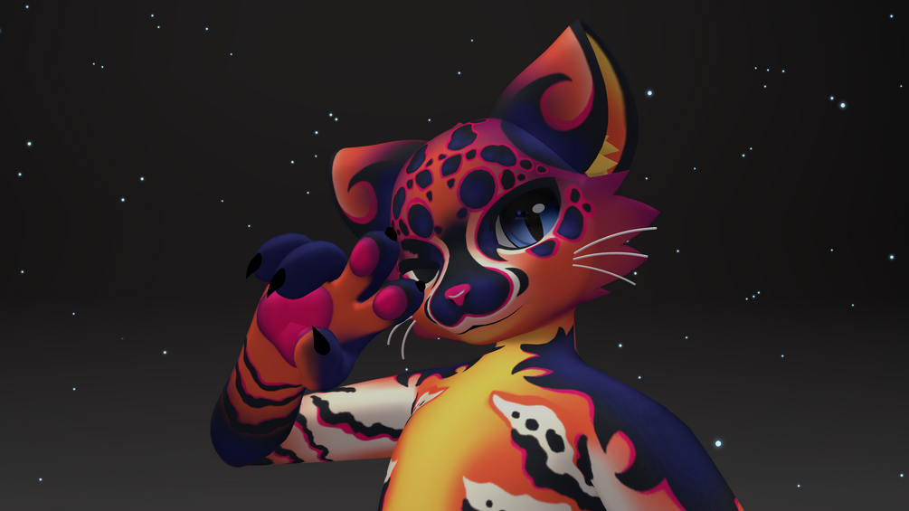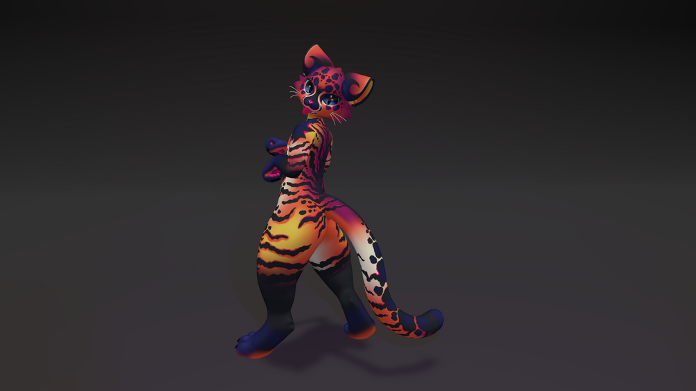 This texture has vibrant bright color, it really stands out in a crowd! its fur painted in shades of orange, blue, and pink that blend and swirl like a sunset. it is nice and striking to the eye, i hope you enjoy :)